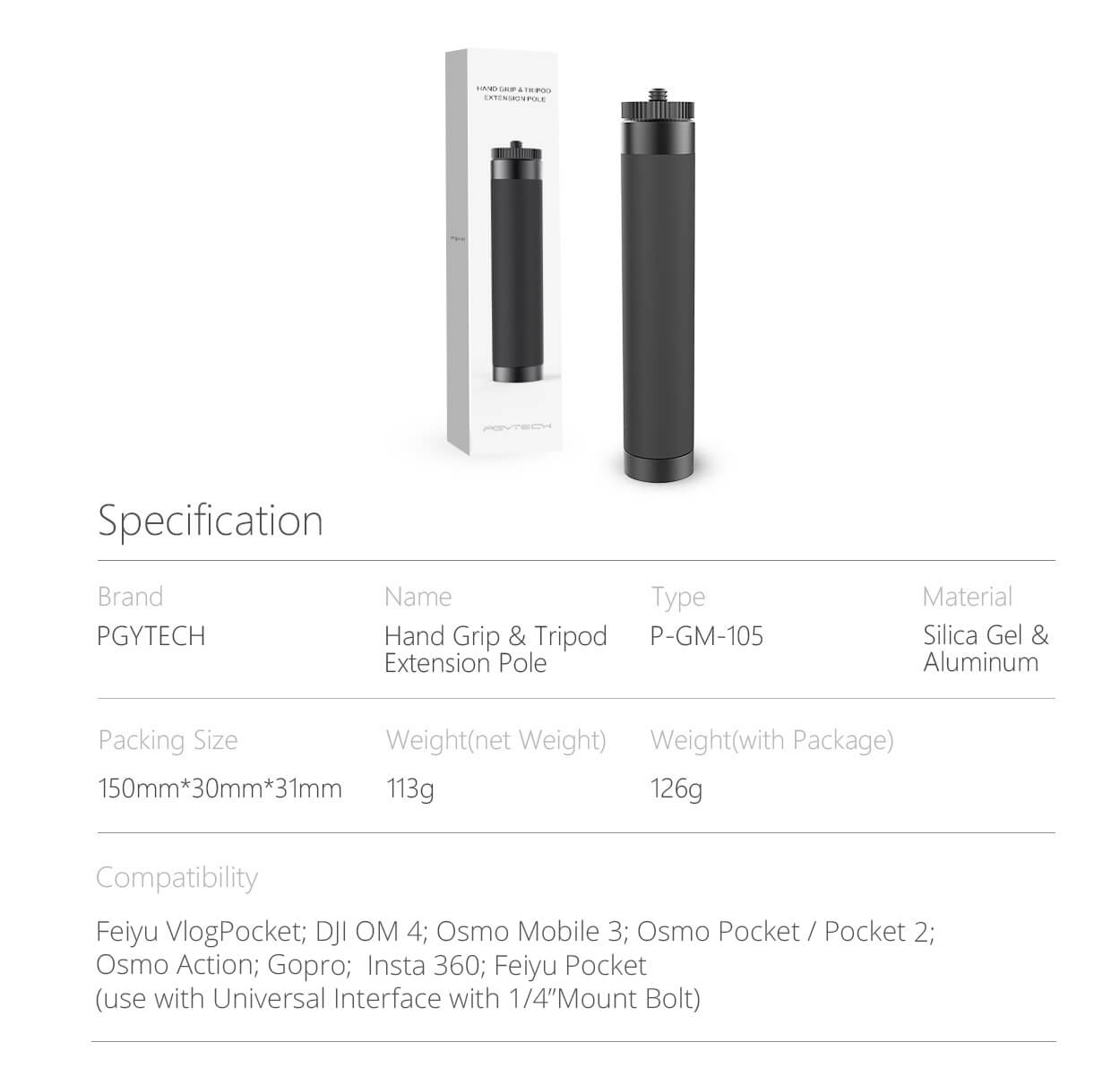PGYTECH Hand Grip & Tripod Extension Pole