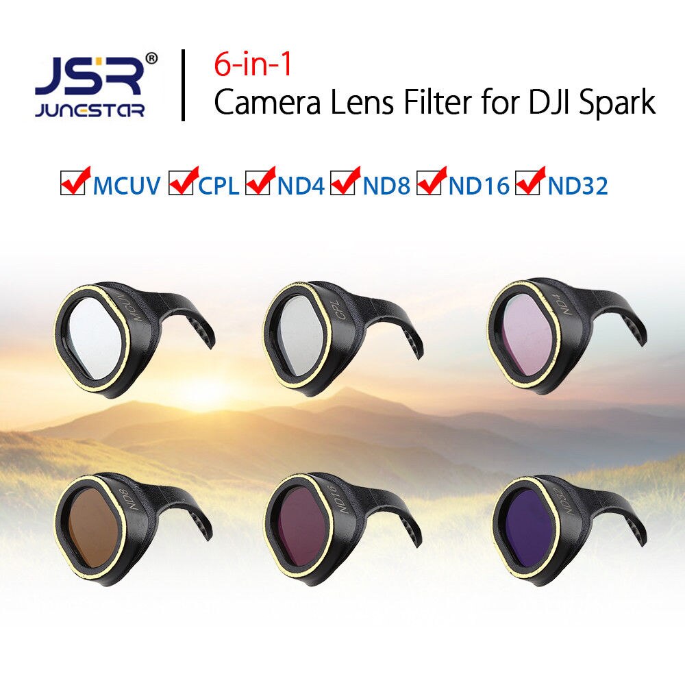 Specifications: Specially Used for DJI Spark Drone Type: Camera Lens Filter for DJI SPARK Color: Black with golden edge MCUV (Ultraviolet) Filter Reduce haze and improve contrast to your video and digital images by minimizing the amount of ultraviolet (UV) light. Especially useful in areas of high altitude, snow, or beach, eliminating the undesirable blue cast.Imported optical glass, top level of transmittance. CPL (Circular Polarizer) Filter Removes unwanted reflections from non-metallic surfaces such as water or glass and glare from the sun.Increases color saturation, creating deep, rich scenic images. Helps to reduce the amount of light entering the lens.Especially useful in reflective or stray light. Neutral Density Filter (ND4 ND8 ND16 ND32) Great for portraiture and outdoor scenes in strong sunlight. Reduces the amount of light reaching the film without affecting the color. Applies slow shutter speed under strong sunlight exposure. Allows wider apertures, effectively decreasing depth of field.ND4 reduces the intensity by two degree; ND8 reduces three...... Made of high-quality optical glass.